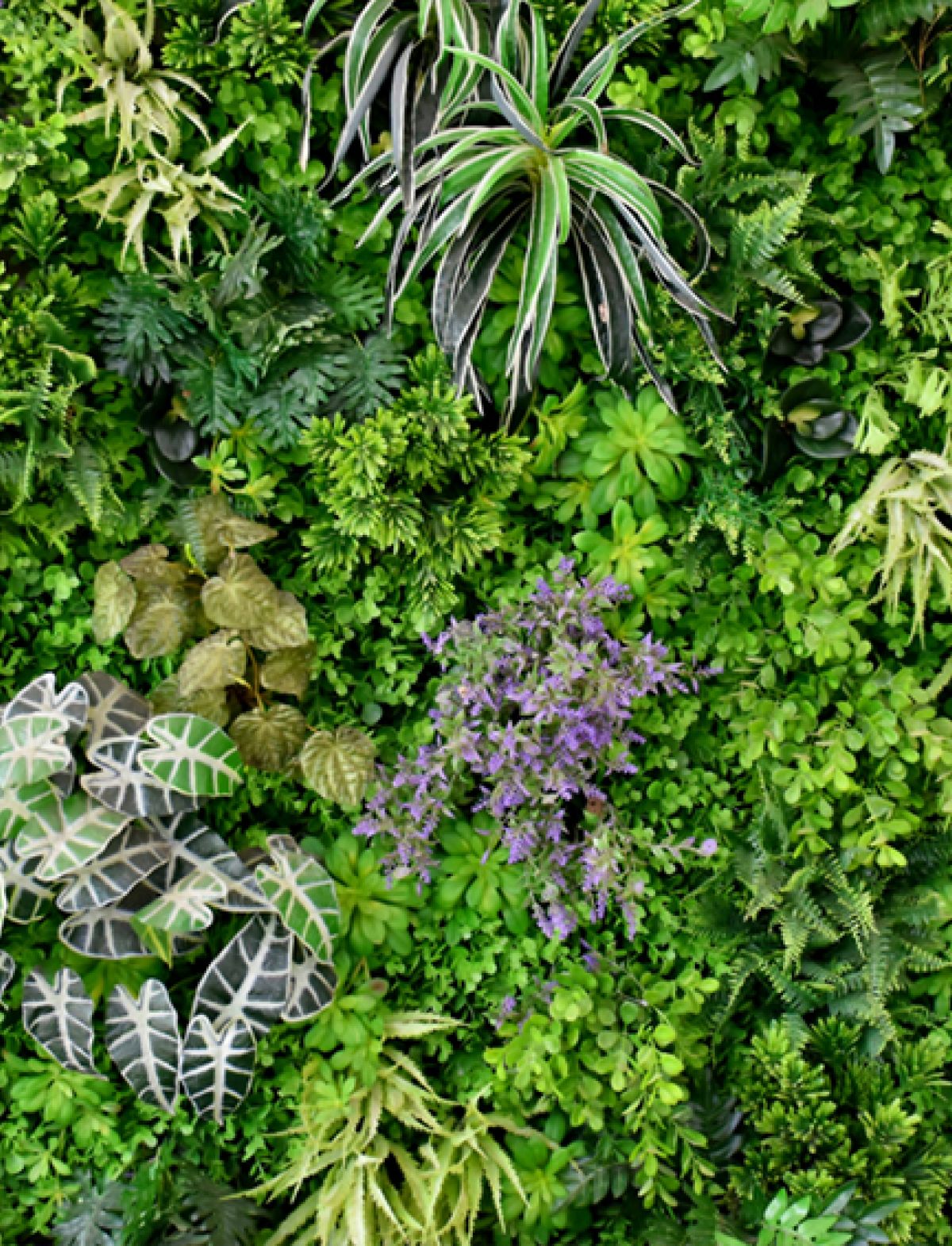 Ofrecemos una variedad de soluciones de riego que se adaptan a cada situación de la pared viviente, desde el riego automático hasta el riego conectado a la línea principal de agua. Nuestras plantas decorativas permiten una amplia variedad de diseños visuales de paredes vivas, desde paredes vivas de aspecto salvaje hasta arreglos más formales.